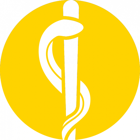 Símbolo Escuela de Medicina, en color amarillo. Facultad de Medicina